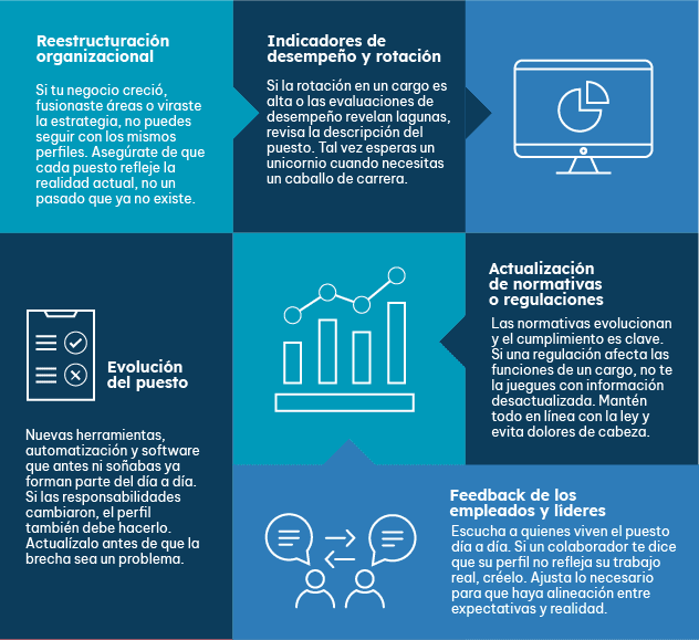 Así que déjanos contarte los momentos claves para actualizar los perfiles de cargo: